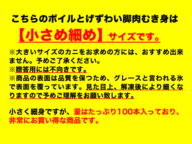 438:【小さめ細め】ボイルとげずわい脚肉むき身100本