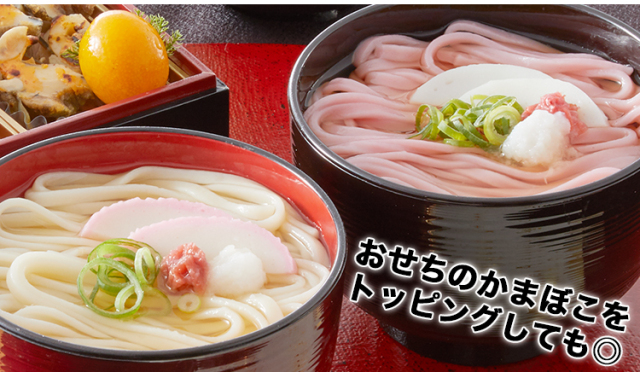 新年にぴったりなおめでたい紅白のうどん