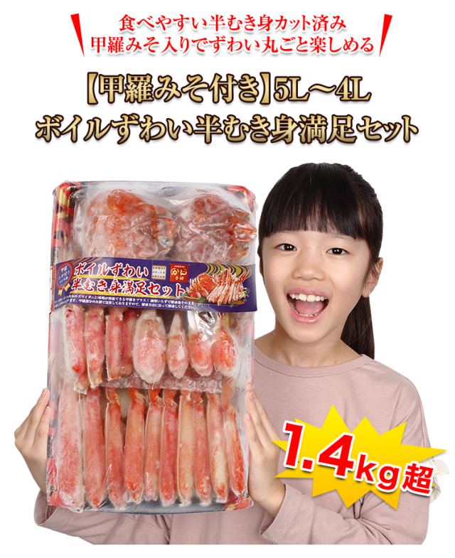 583:【甲羅みそ付き】5L~4Lボイルずわい半むき身満足セット1.4kg超