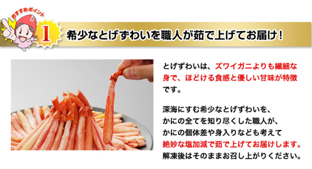 598:【小さめ細め】ボイルとげずわい脚肉むき身80本