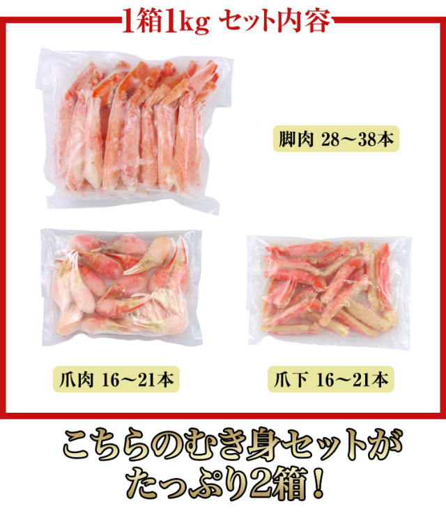 612w:ボイルずわい半むき身セット【脚・爪・爪下】(約1kg×2箱)