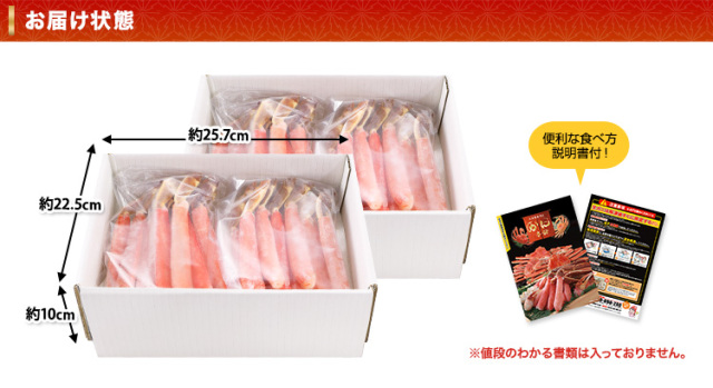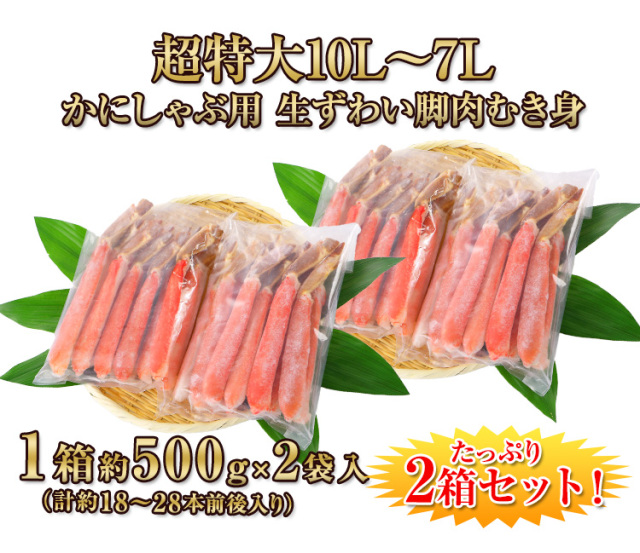 | 商品名 | 【かにしゃぶ用】超特大10L~7L生ずわい脚肉むき身18~28本(約1kg)×2箱 |