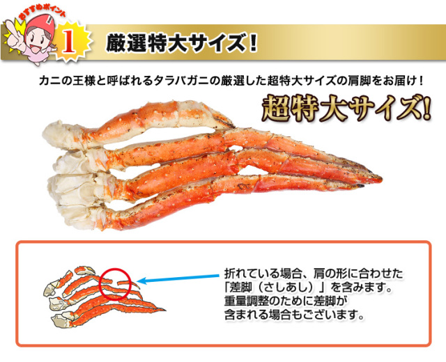 味、身質、身詰まりともに満点の厳選タラバの肩脚