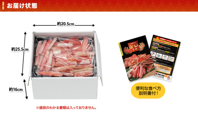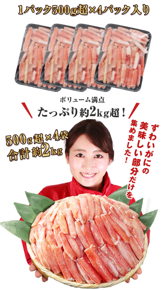 695:【刺身可】生ずわい脚肉むき身棒肉 2kg(総重量約2.4kg)