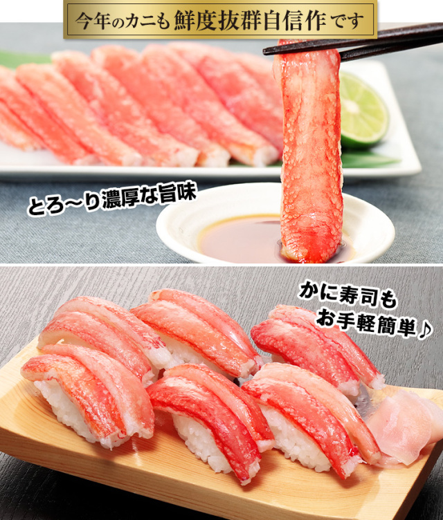 殻剥き不要でお刺身はもちろん、焼きガニなど楽しみ方色々!
