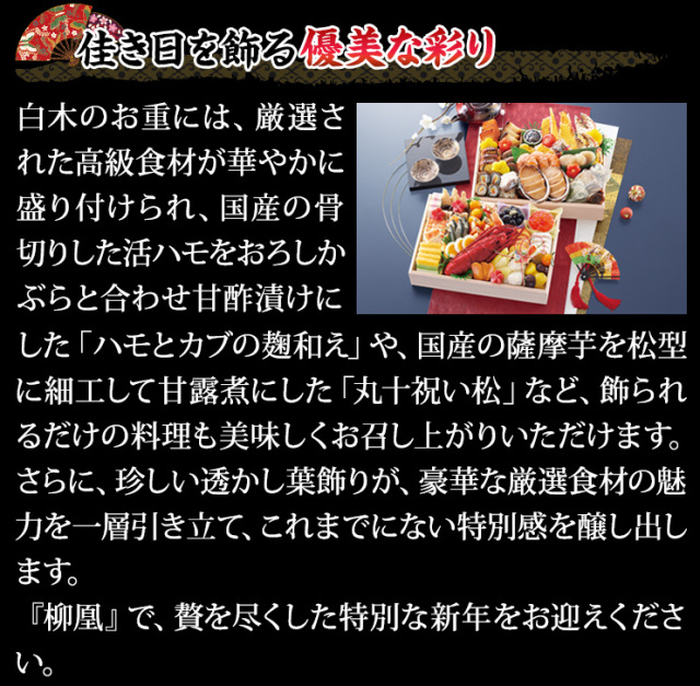 『柳凰』で、贅を尽くした特別な新年をお迎えください。