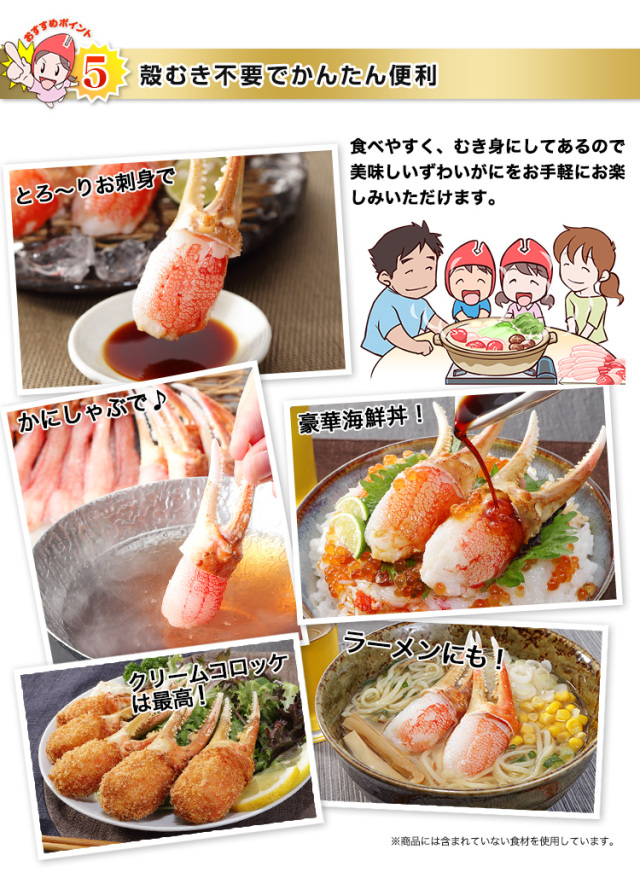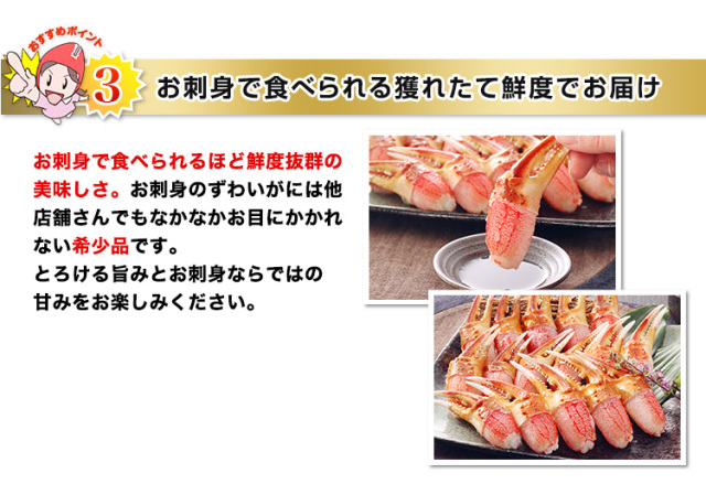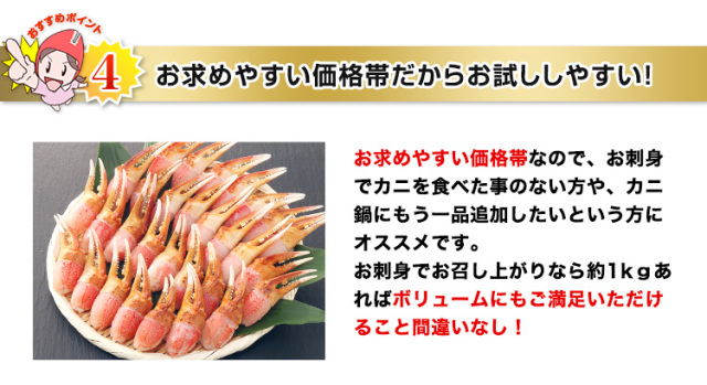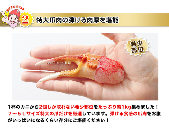 | 商品名 | 【刺身OK】特大7L~5L生ずわい爪むき身23本~30本(総重量約1kg)