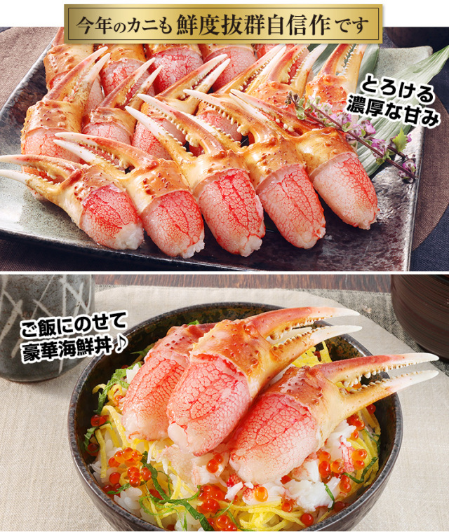 食べる直前に5~10分ほど流水で解凍してください。 【注意】冷蔵庫や常温で数時間放置するとカニが黒変する場合がございます。 |