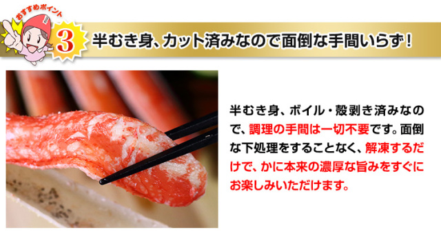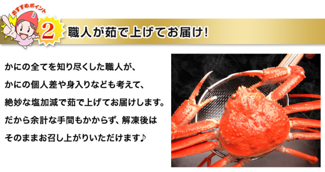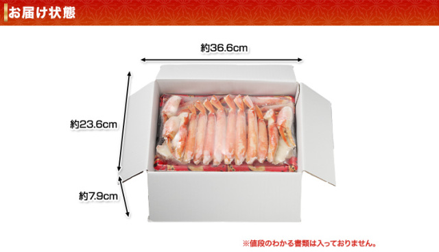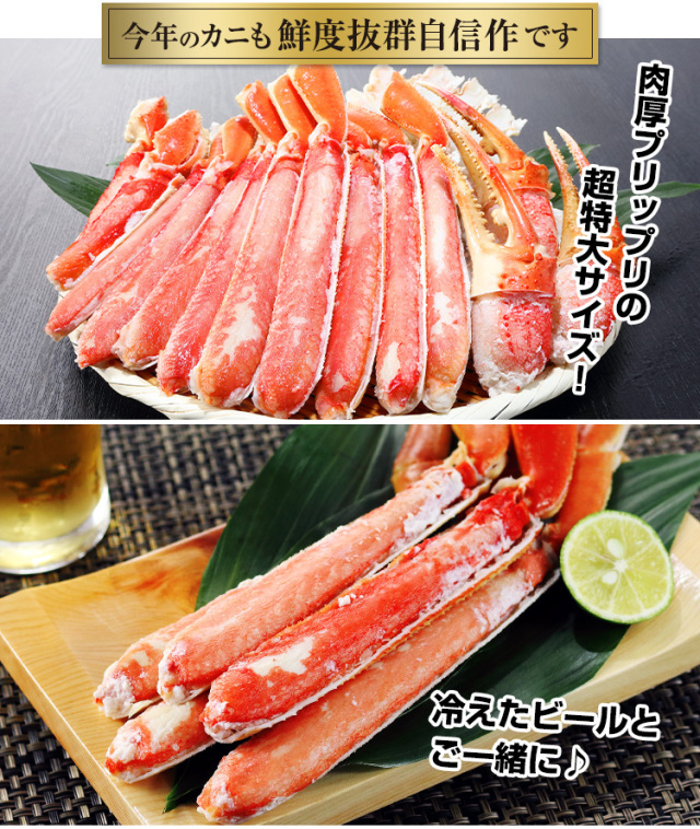 | 大きさ | 太脚~殻持ち手の長さ平均 約18cm前後 ※冷凍時のサイズです、個体差があります。 |