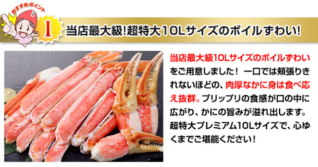 | 商品名 | 超特大プレミアム10Lボイルずわい半むき身セット 1kg超(総重量約1.2kg) |