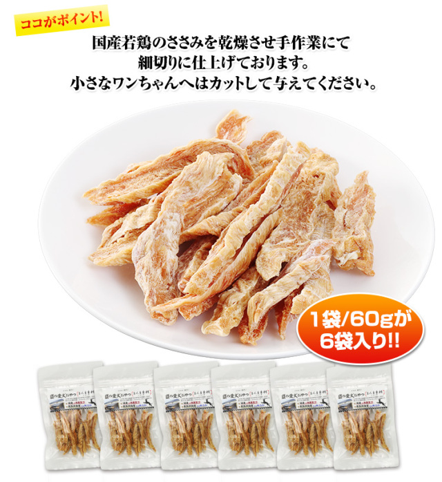 8002:【国産無添加】匠の愛犬おやつ まんま素材 ささみ細切り60g×6袋
