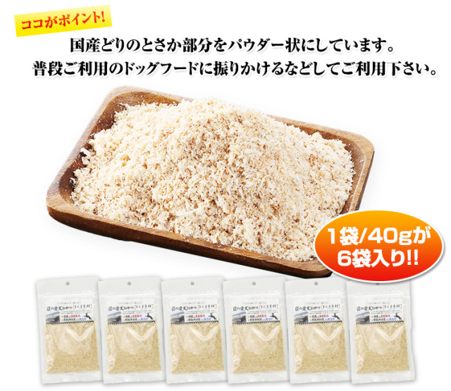8006:【国産無添加】匠の愛犬おやつ まんま素材 ヒアルロン酸パウダー(鶏とさか) 40g×6袋