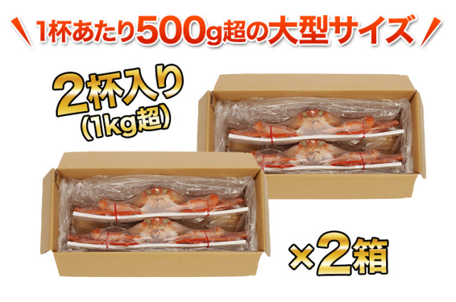 969:【境港厳選】浜茹で大型紅ずわいがに姿2杯(1kg超)×2箱